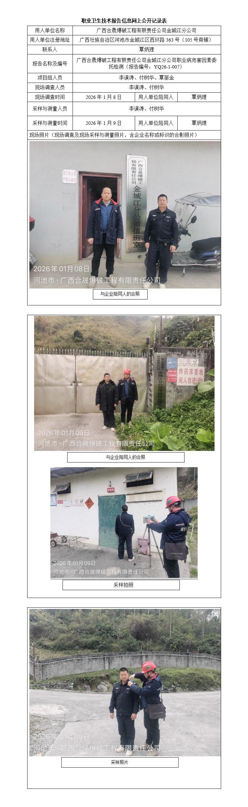 廣西合晟爆破工程有限責任公司金城江分公司職業(yè)病危害因素委托檢測