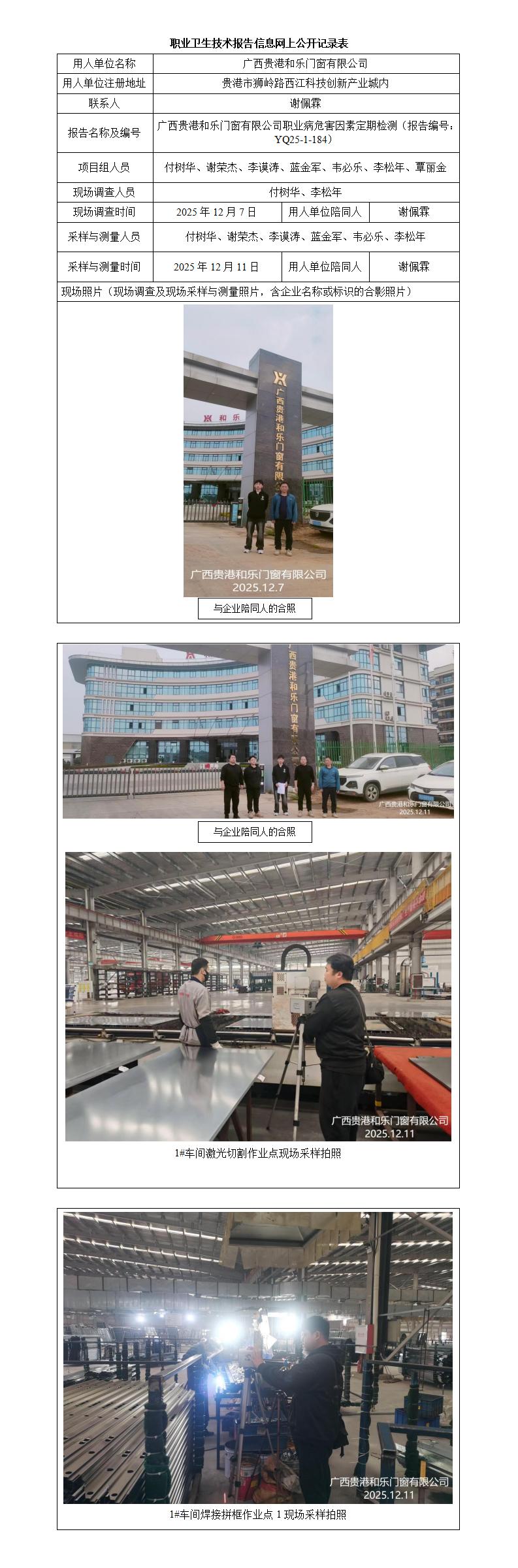 廣西貴港和樂(lè)門(mén)窗有限公司職業(yè)病危害因素定期檢測(cè)