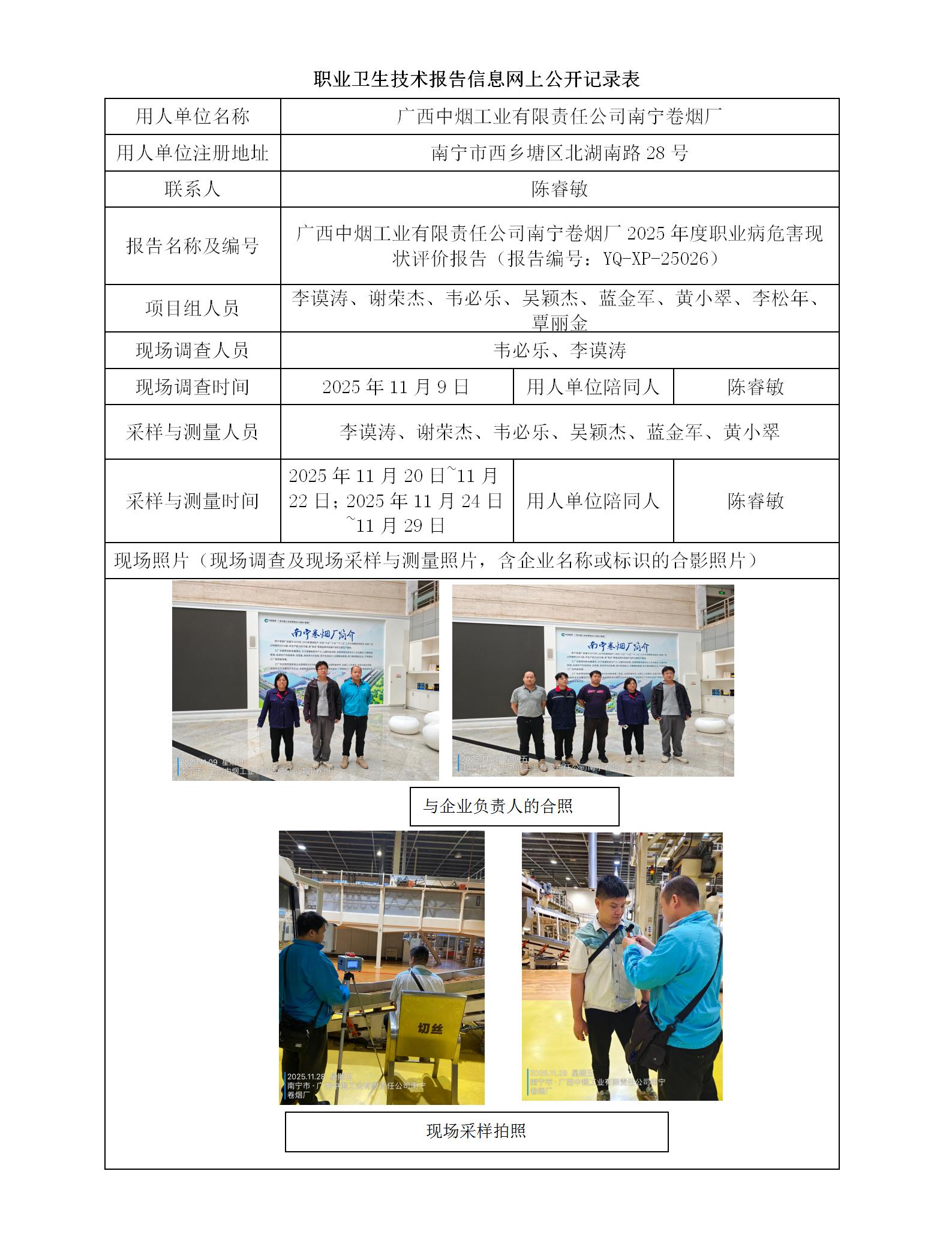 廣西中煙工業(yè)有限責(zé)任公司南寧卷煙廠2025年度職業(yè)病危害現(xiàn)狀評價(jià)報(bào)告