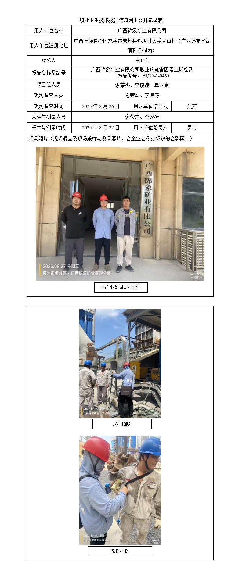 廣西錦象礦業(yè)有限公司職業(yè)病危害因素定期檢測