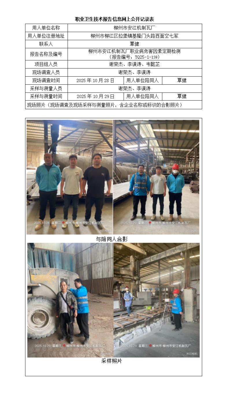 柳州市安江機制瓦廠職業(yè)病危害因素定期檢測 (報告編號:YQ25-1-159)