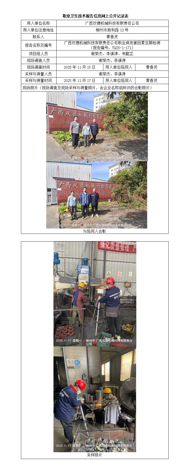 廣西雙德機械科技有限責任公司職業(yè)病危害因素定期檢測 (報告編號:YQ25-1-171)