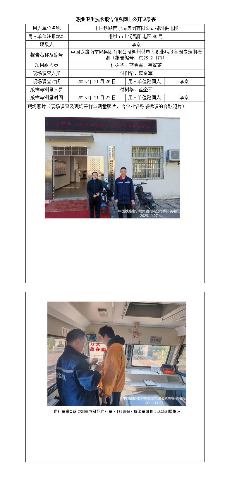 中國鐵路南寧局集團(tuán)有限公司柳州供電段職業(yè)病危害因素定期檢測(報告編號:YQ25-2-176)