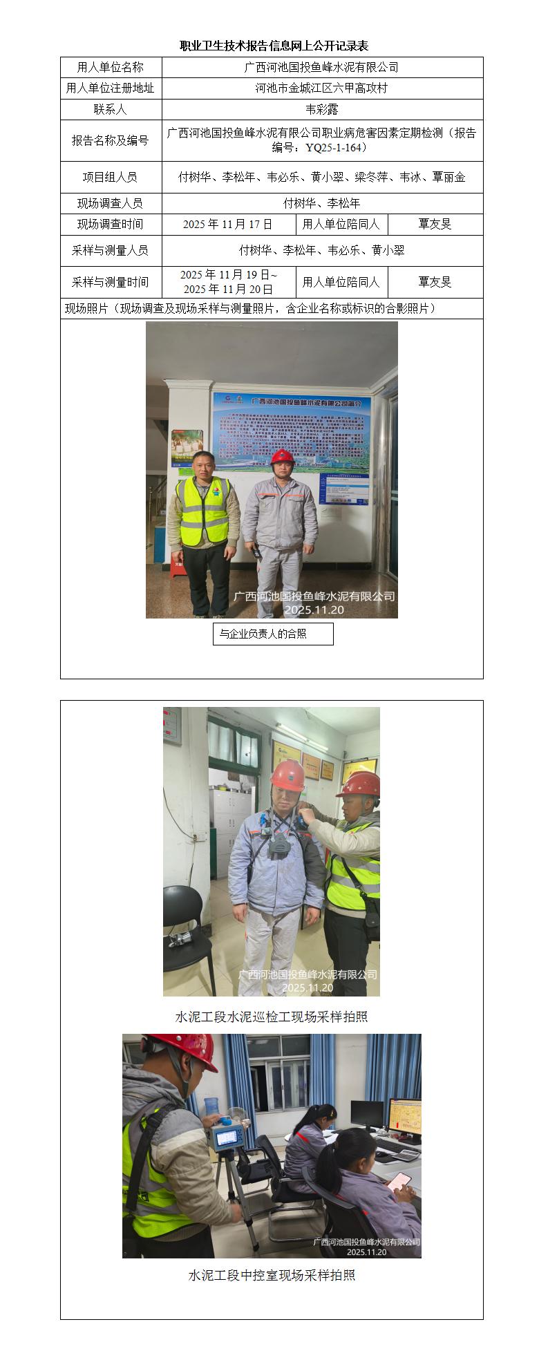 廣西河池國投魚峰水泥有限公司職業(yè)病危害因素定期檢測